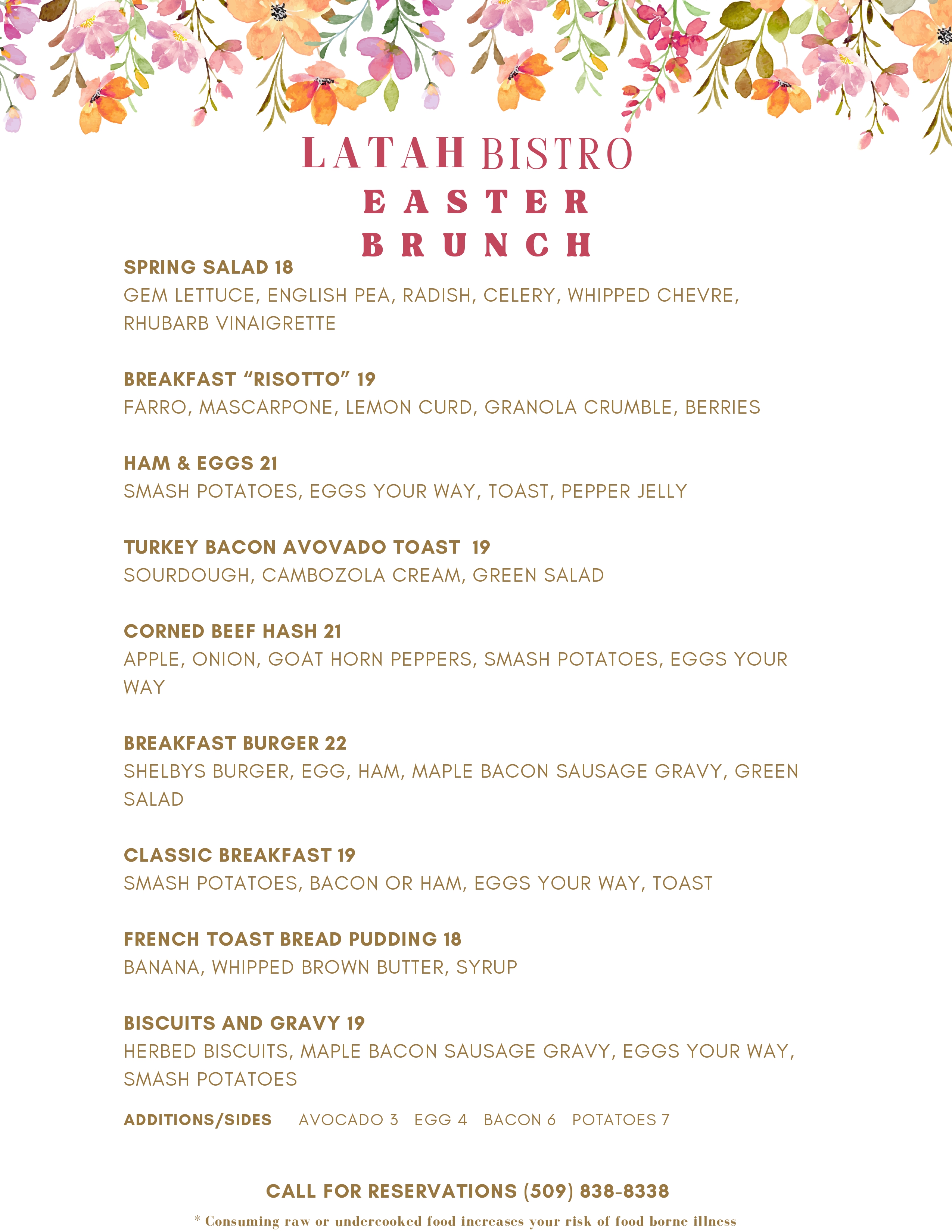 Call 509-838-8338 to make your reservation